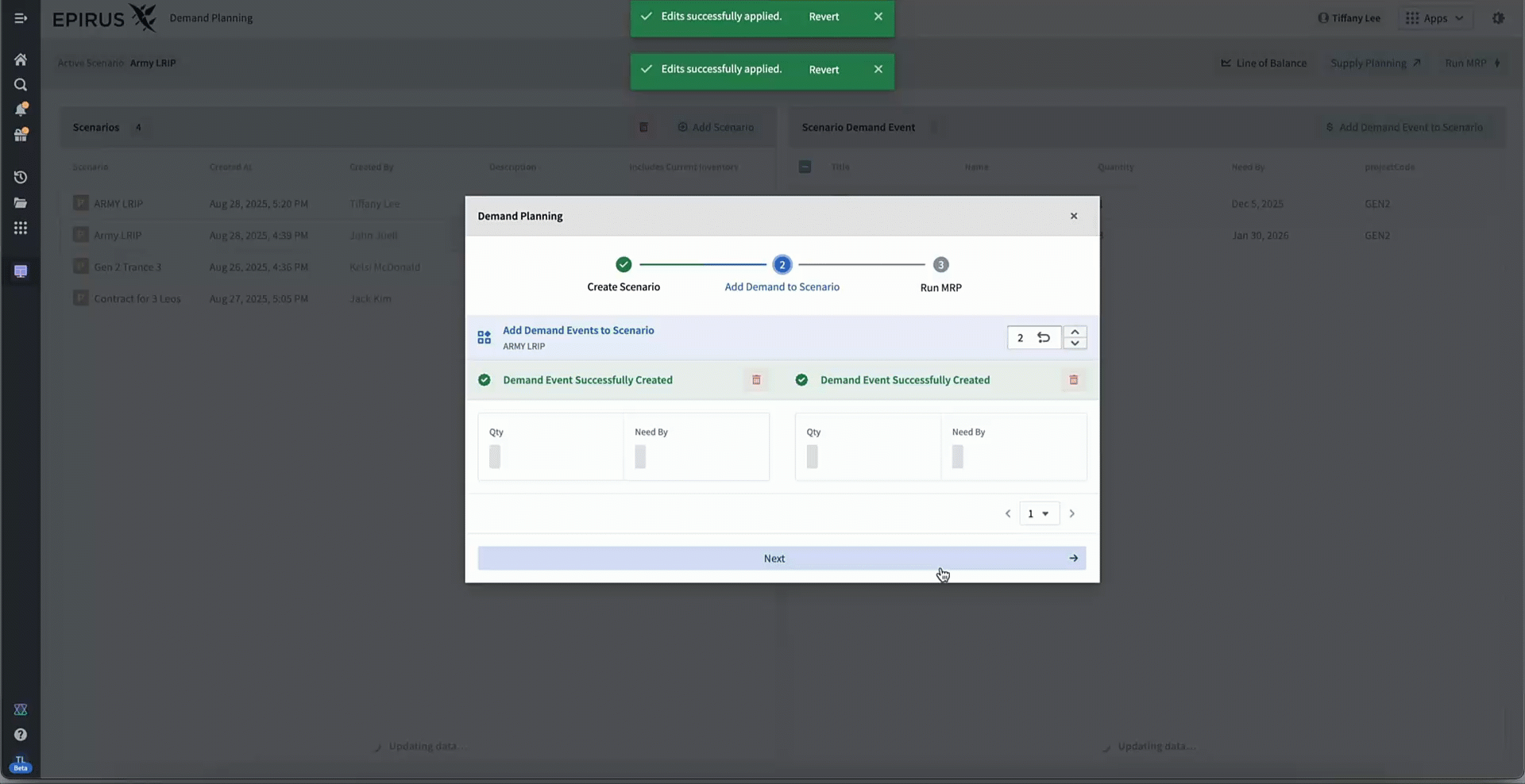 During the demo, Kelsi McDonald walked through how she leverages MRPspeed as a supply planner to replace manually intensive Excel-based workflows that, while functional for current operational states, cannot scale to support upcoming production volume increases. After running sophisticated demand scenarios powered by predictive analytics, she rapidly identified the right “needle in a haystack” action and made a prioritization decision based on what would have the greatest impact on Epirus’s business. Additionally, she showcased how MRPspeed’s algorithmic processing capabilities connect to Epirus’s ontology, helping to further synthesize the critical operational information that was previously siloed across domains.